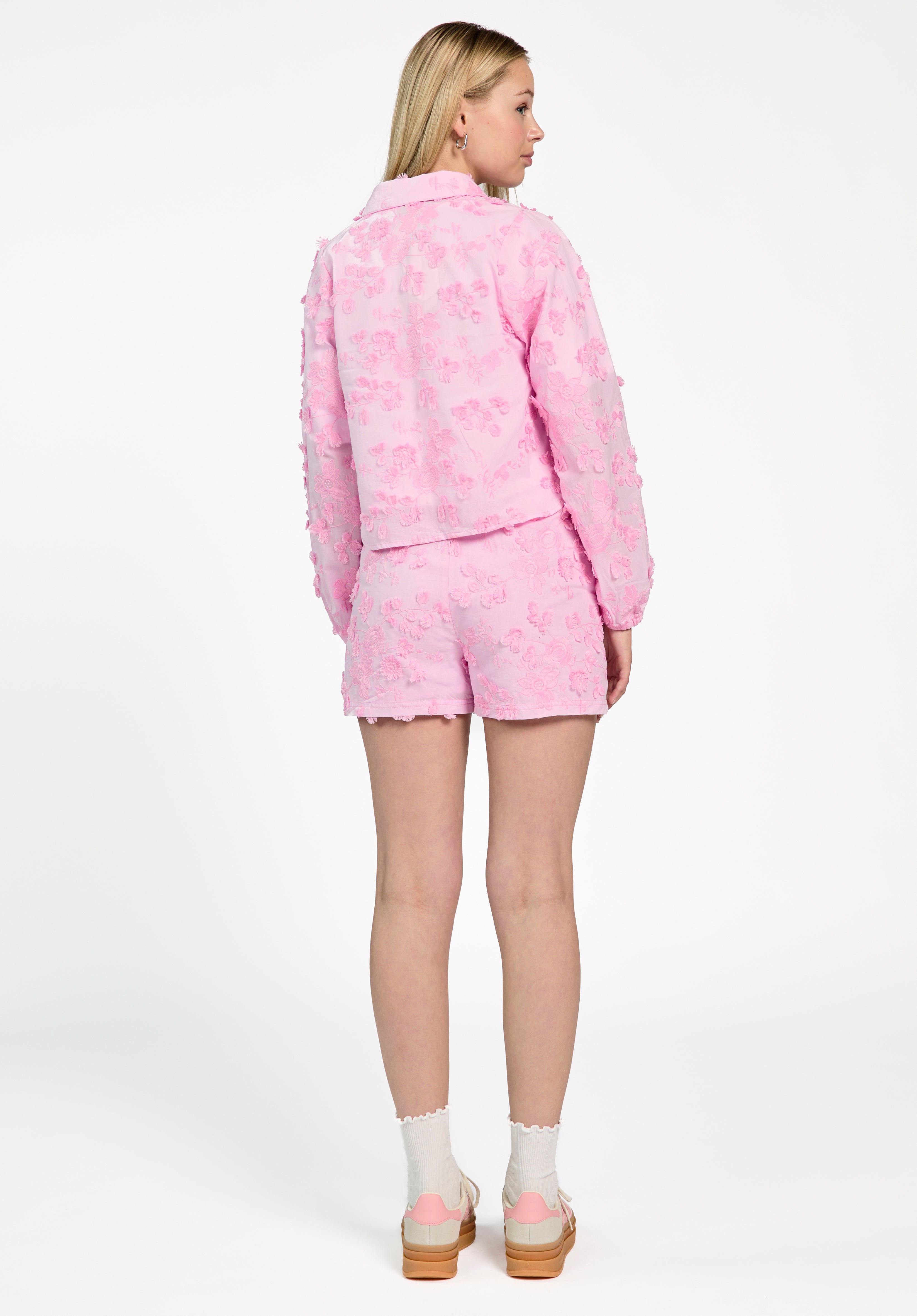 • All-over bloemendetail met 3D-effect
