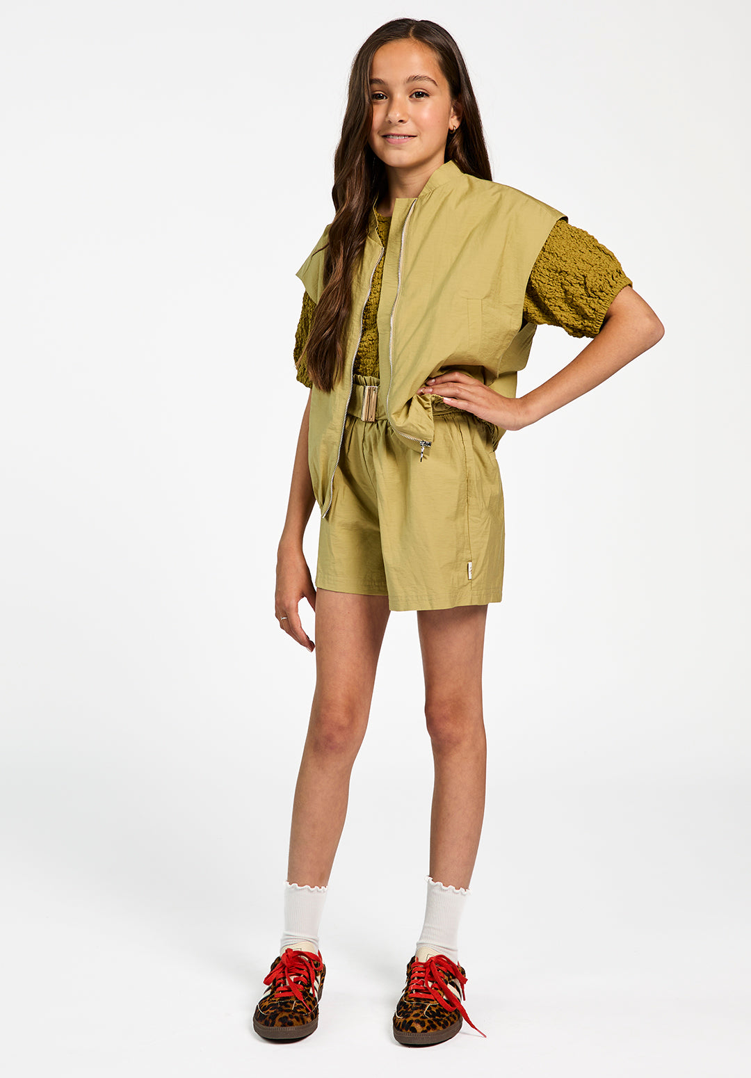 De Rikki short heeft een rechte fit en is gemaakt van een stevige, maar luchtige stof. De brede elastische tailleband en het bijpassende gespceintje zorgen voor een stoere en sportieve uitstraling. Praktisch met steekzakken aan de zijkant. Draag samen met het Vanja jasje als set.