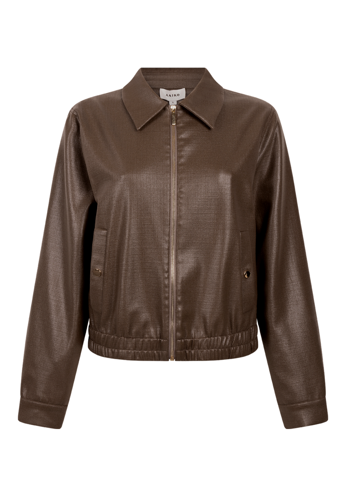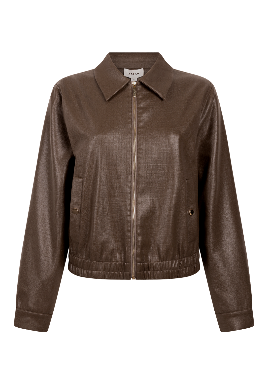 Jack Ravi is uitgevoerd met een subtiele glansfinish. Het korte model met ritssluiting en klassieke kraag krijgt door de elastische zoom en goudkleurige details een modern accent. De rijke bronsgroene coating geeft het jasje een luxe uitstraling die zowel casual als chic te combineren is.