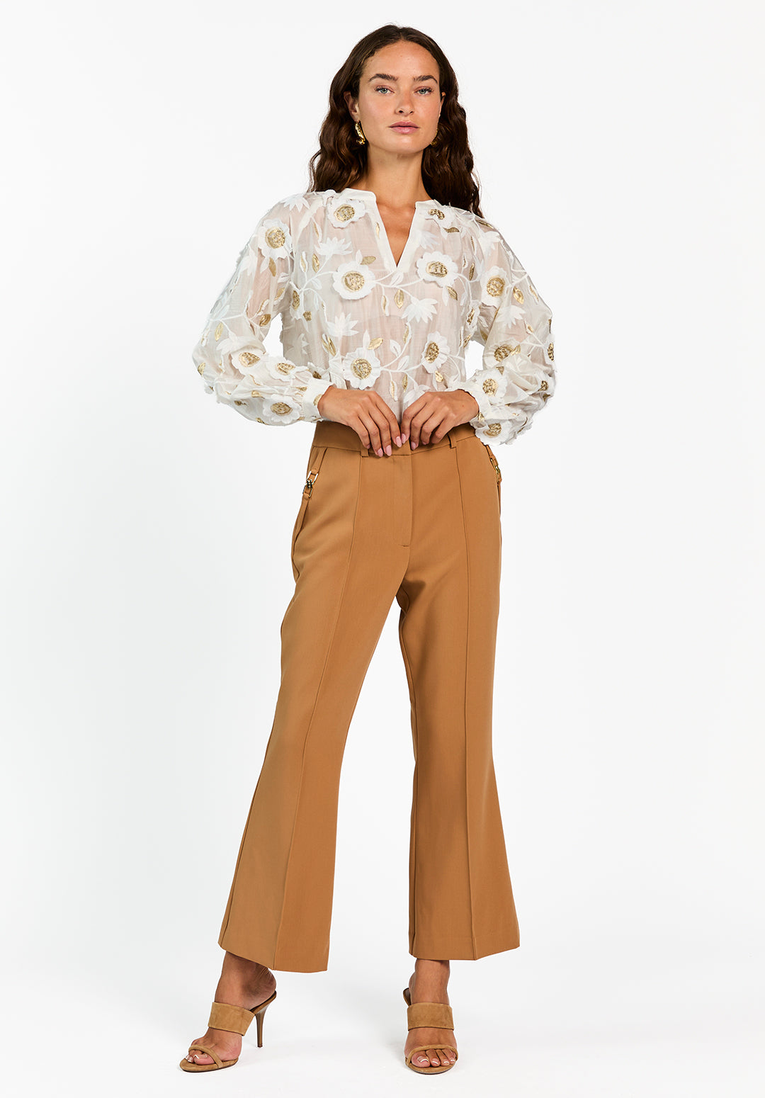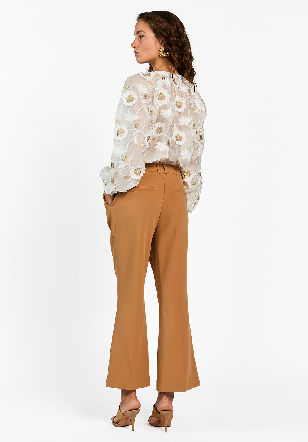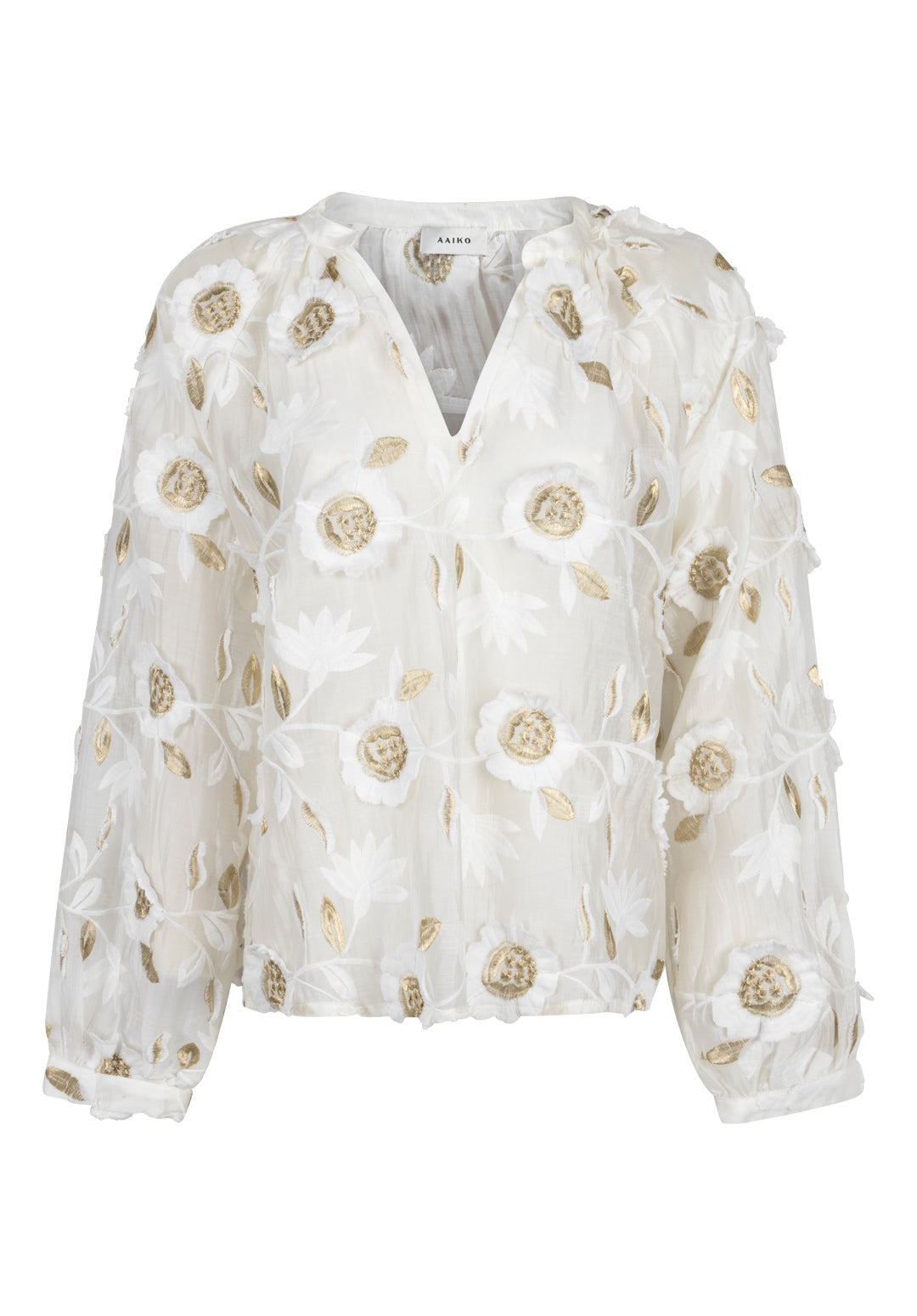 Deze Alanza blouse is een luchtige blouse met een transparante look en subtiel volume in de mouwen. Het model is versierd met wit en goudkleurig bloemenborduursel en heeft een rechte fit. De blouse sluit met een kleine knoop aan de achterkant en is gevoerd op het lichaam voor extra draagcomfort