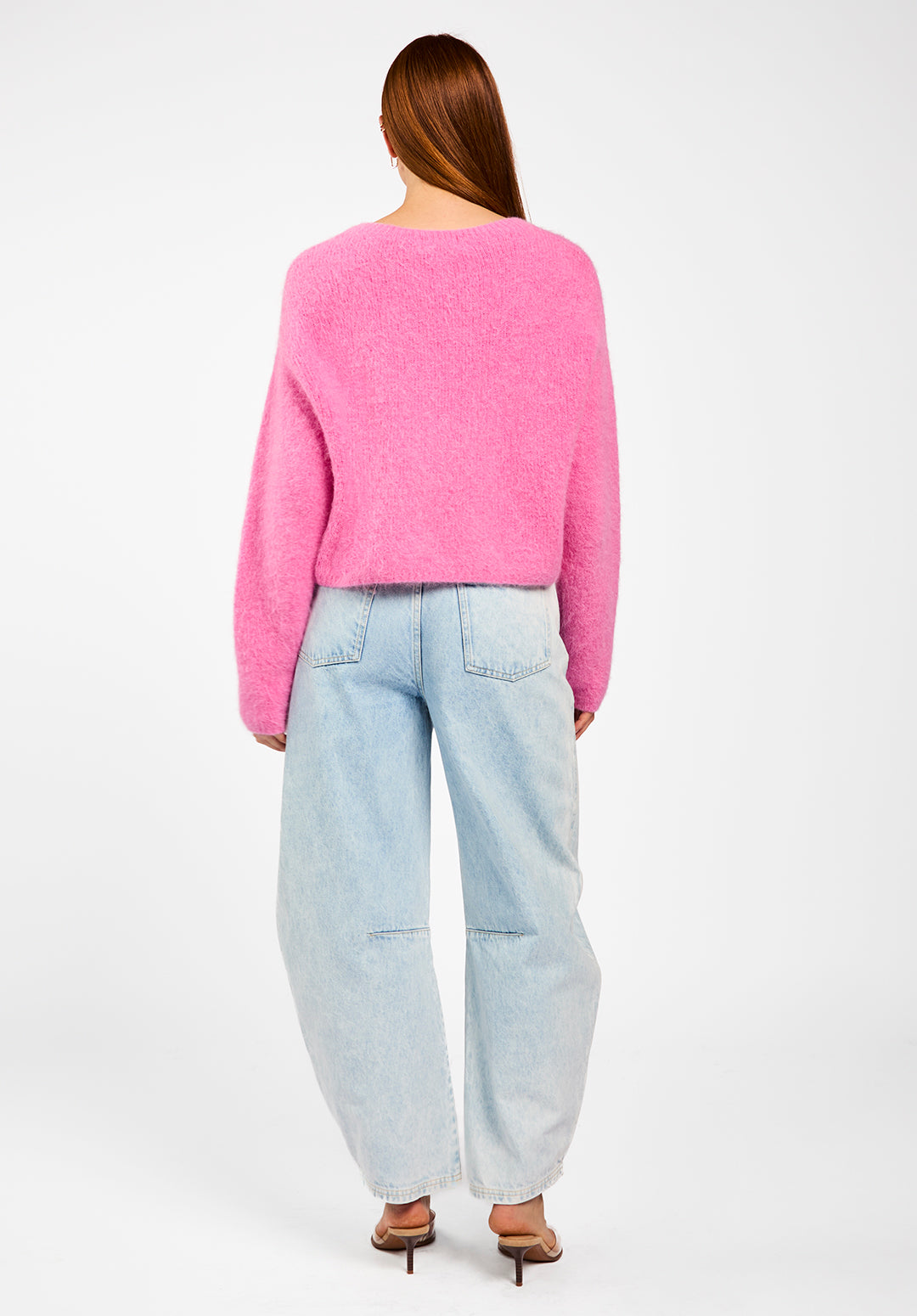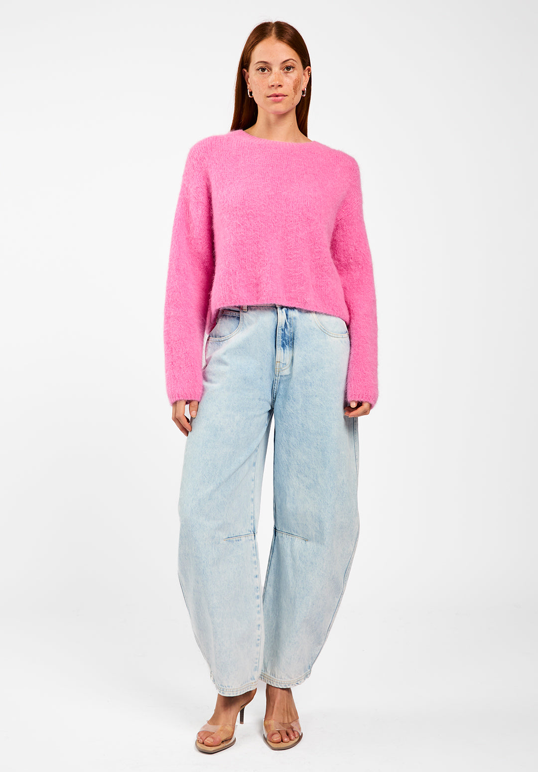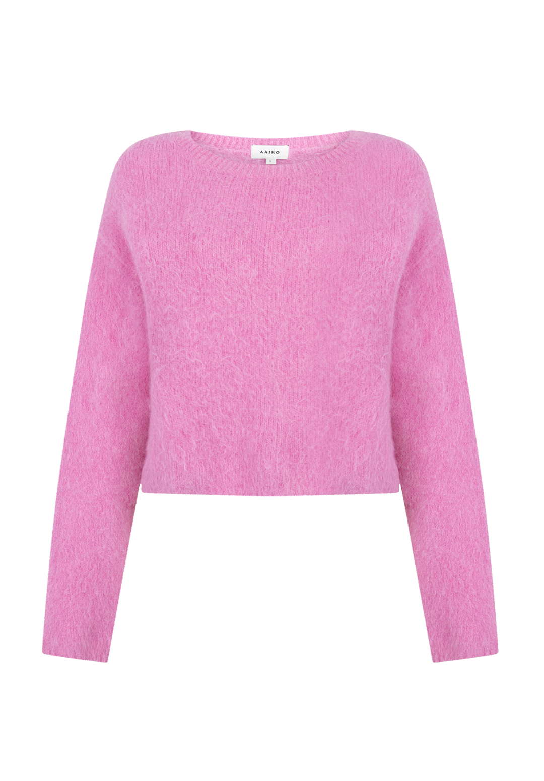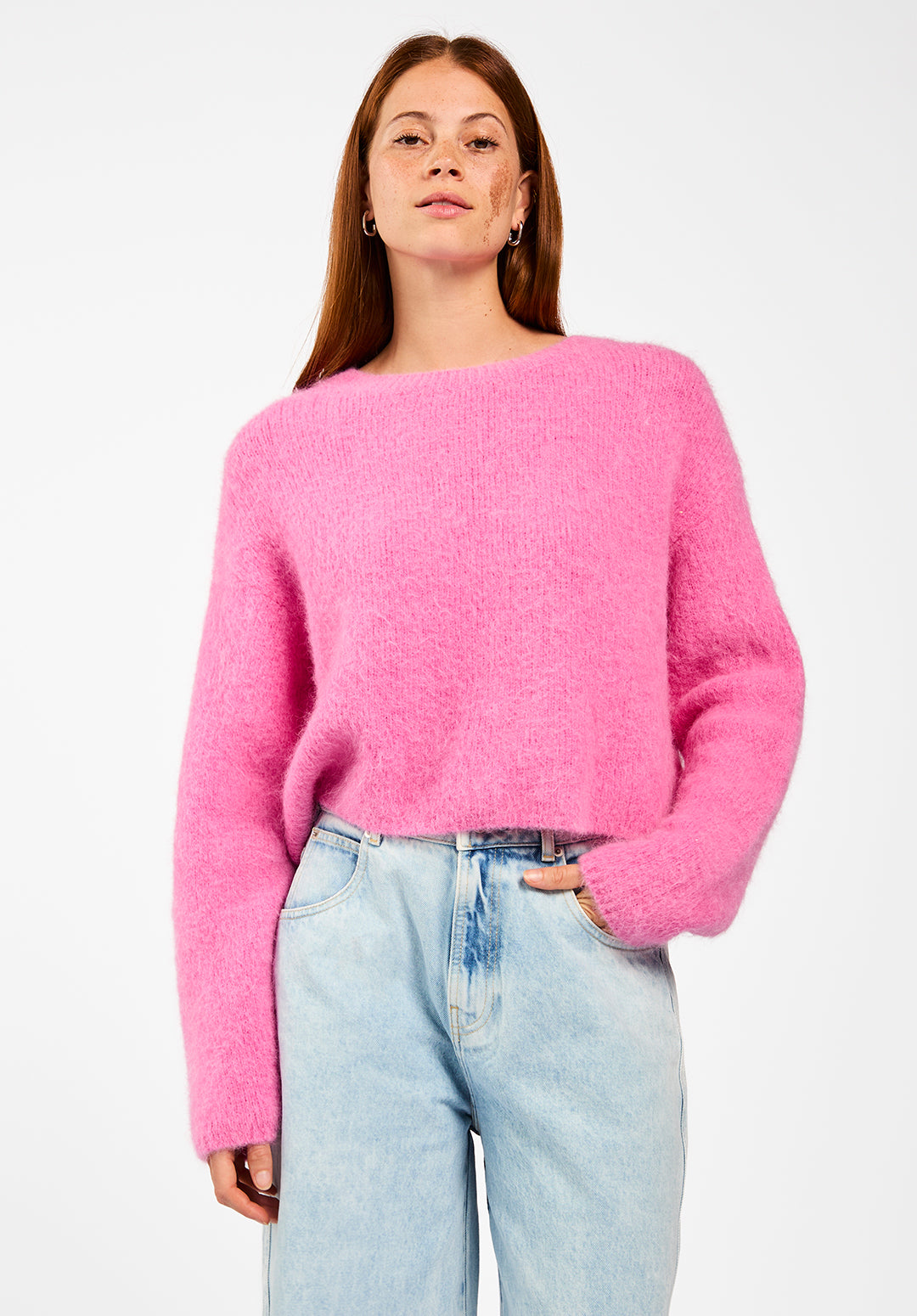 De Feline trui is een zachte en luchtige knit gemaakt van een alpacawolblend. Het model valt recht en is iets korter. Dankzij de verlaagde schoudernaden krijgt deze trui een ontspannen uitstraling. De wollige breistructuur voelt prettig aan op de huid. Combineer met broek Sacha.