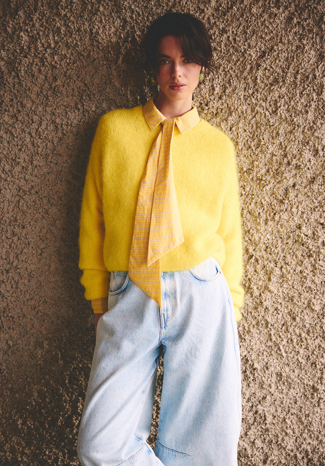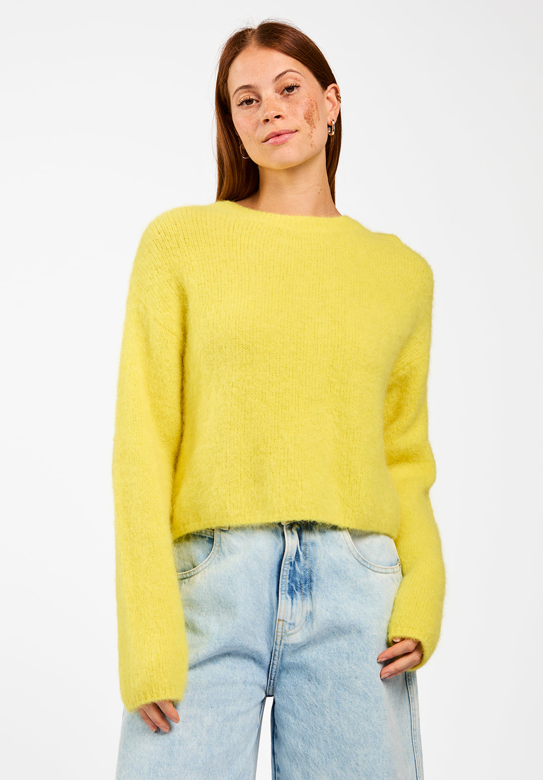 De Feline trui is een zachte en luchtige knit gemaakt van een alpacawolblend. Het model valt recht en is iets korter. Dankzij de verlaagde schoudernaden krijgt deze trui een ontspannen uitstraling. De wollige breistructuur voelt prettig aan op de huid. Combineer met broek Sacha.