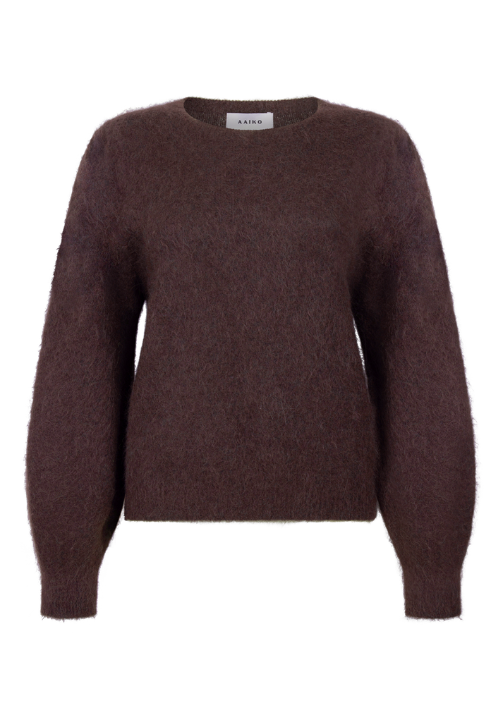 De Denize trui is een icoon uit de Aaiko collectie. Gemaakt van een blend met alpacawol houdt dit model je heerlijk warm tijdens de koudere dagen. De subtiele pofmouwen geven het item een speels accent. Een echte favoriet, makkelijk te combineren met een spijkerbroek of de Chantalle pantalon.