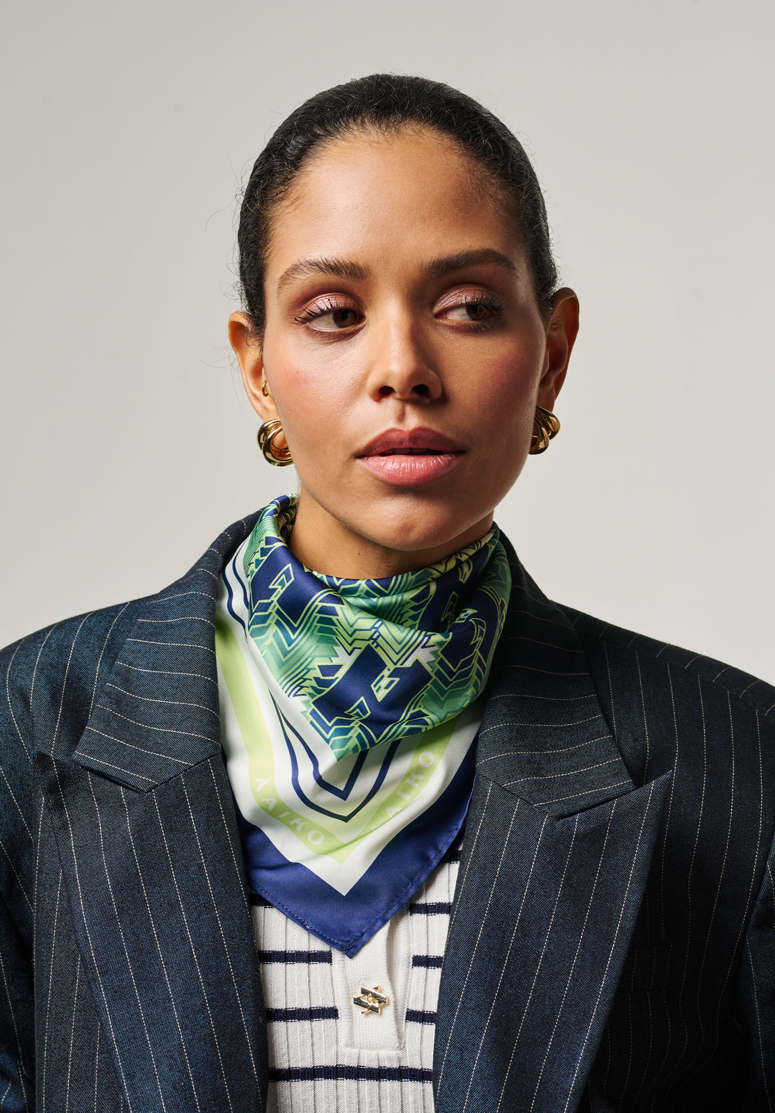 Deze sjaal geeft je outfit net dat beetje extra. Door het unieke Aaiko patroon kan het op meerdere manieren gedragen worden – om je nek, in je haar, aan je tas of zelfs als ceintuur. De zachte, soepele stof zorgt voor een luxe uitstraling en voelt prettig aan.