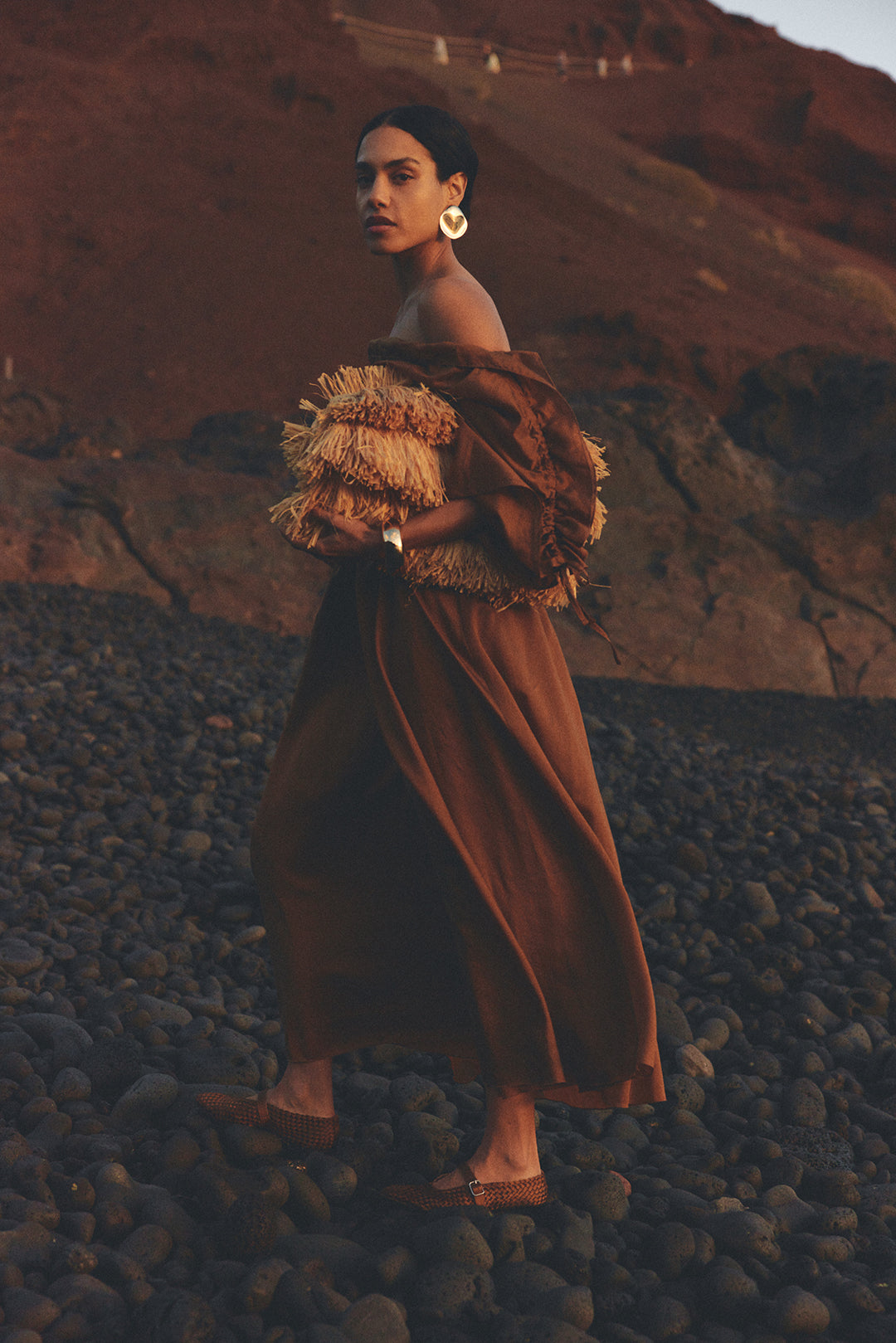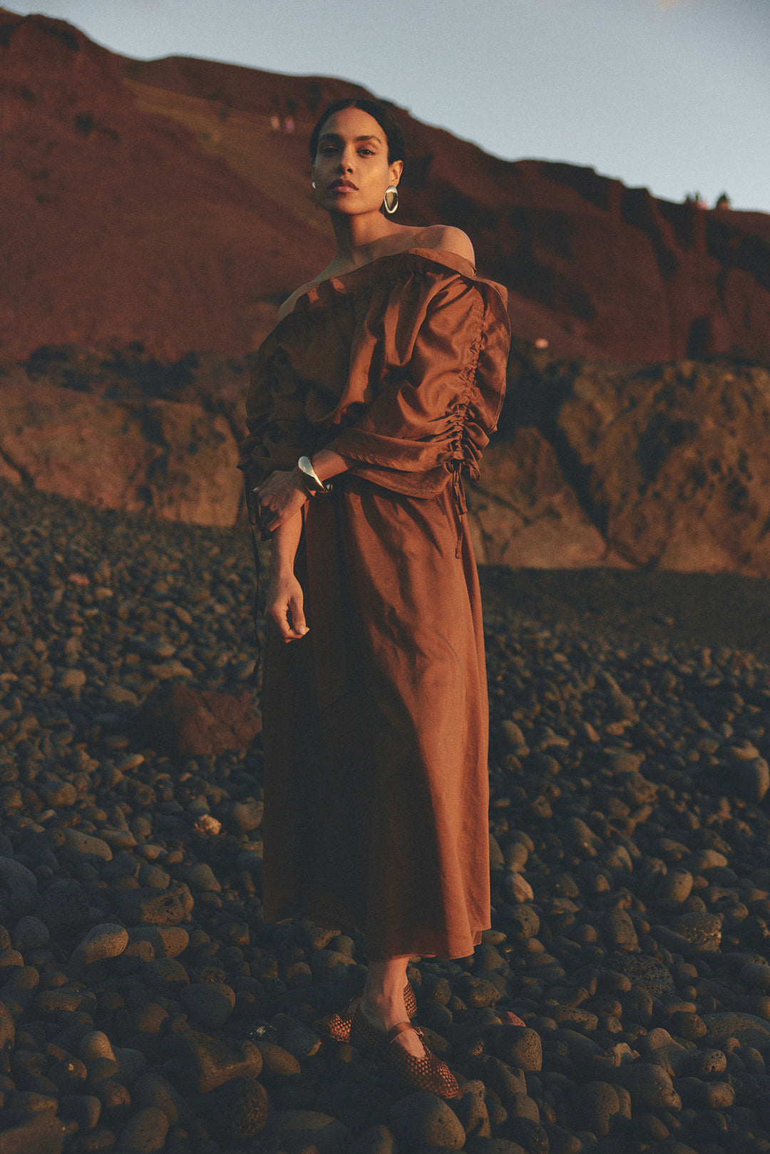 - Midi length with a flowing skirt