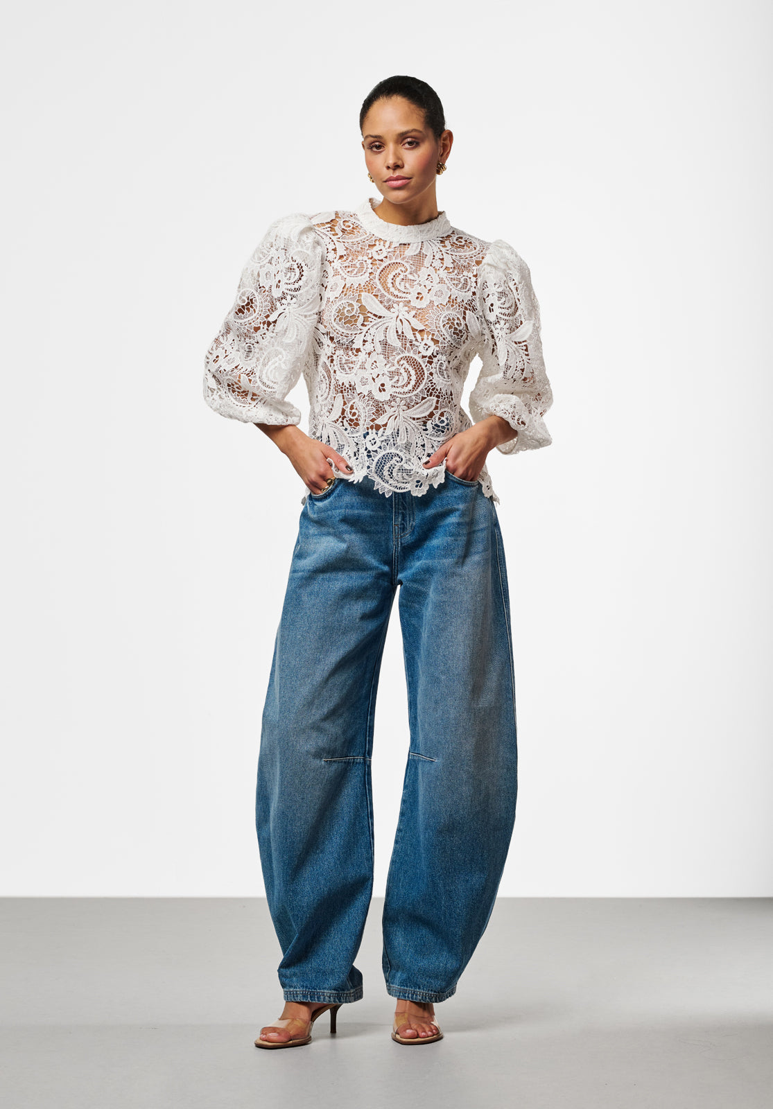 The Legacy Lace blouse was specially designed for the 20th anniversary. Crafted from openwork lace with a high neck and three-quarter puff sleeves, the slightly sheer fabric creates an airy feel, perfect for pairing with high-waisted trousers or a skirt. A subtle piece with refined finishing and a nod to the past.