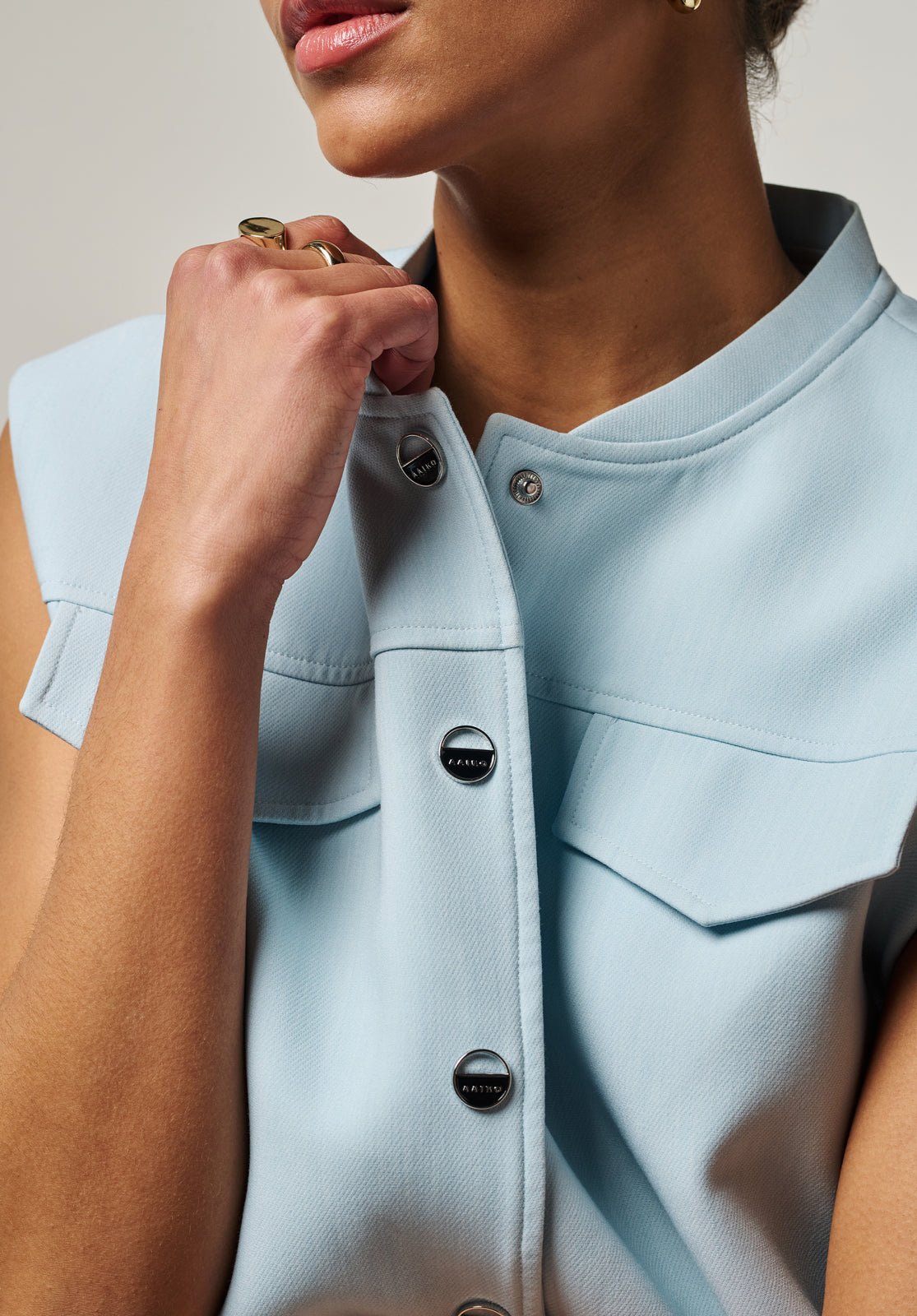 The Olivia gilet is a sleeveless jacket with a subtle utility vibe. Designed with a button closure and patch chest pockets, it’s finished with an elasticated waistband that adds soft definition to the relaxed fit. Made from a sturdy yet comfortable fabric with a textured feel. Style it with the Harper trousers as a co-ord set or keep it casual with the Sacha barrel jeans.