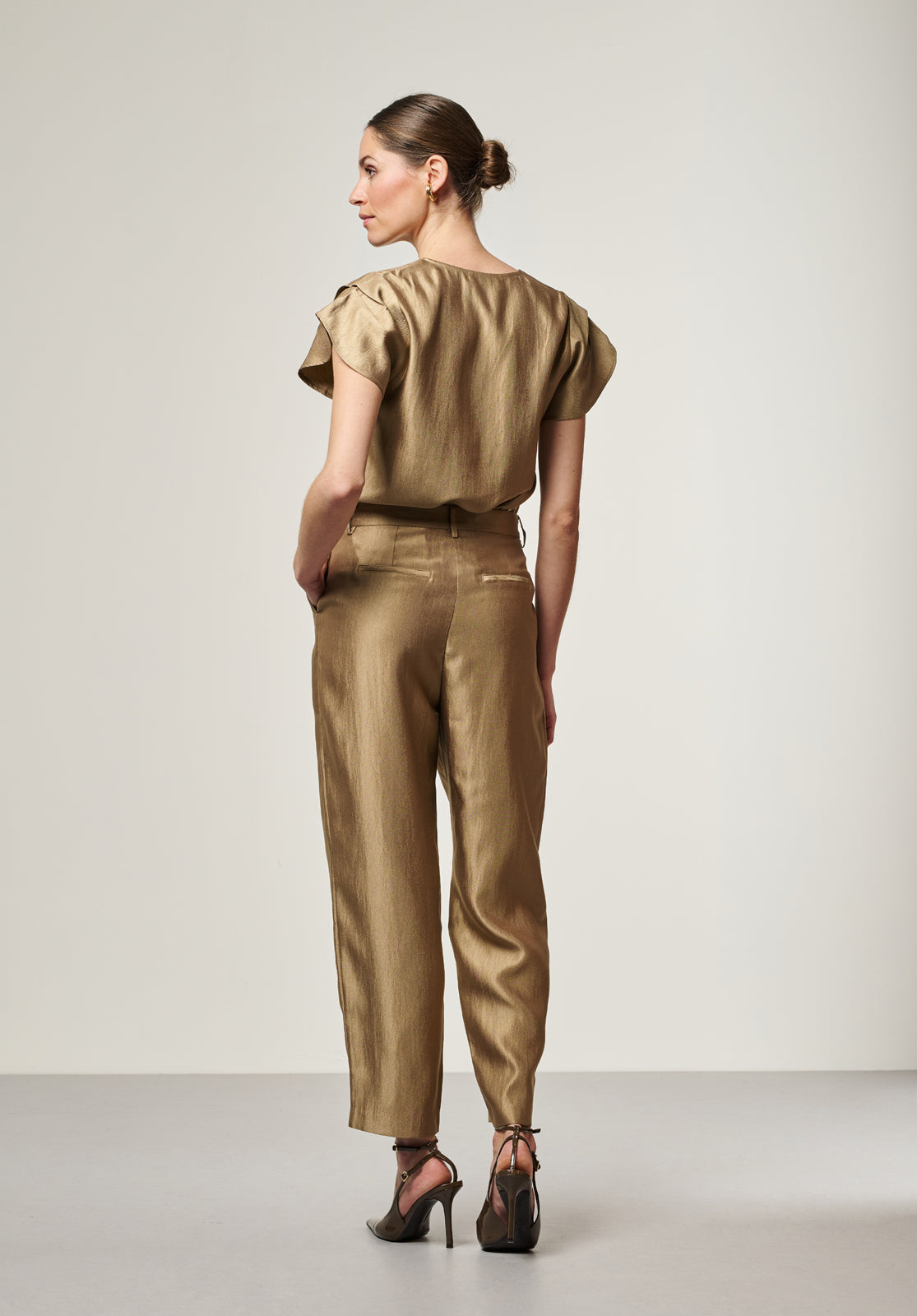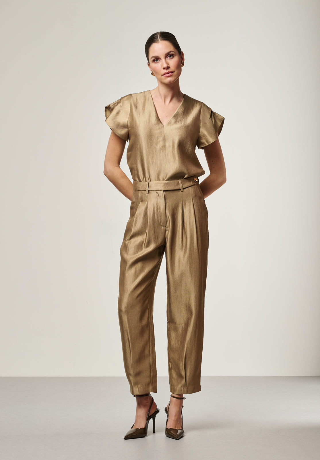 Deze broek heeft een verfijnde, moderne uitstraling met een duidelijke focus op pasvorm. De rechte pijpen geven het ontwerp een cleane, geklede look. De middelhoge taille zorgt voor een comfortabele fit, waardoor de broek geschikt is voor zowel zakelijke outfits als meer casual combinaties. een mooie combinatie met de broek is de Minny top.