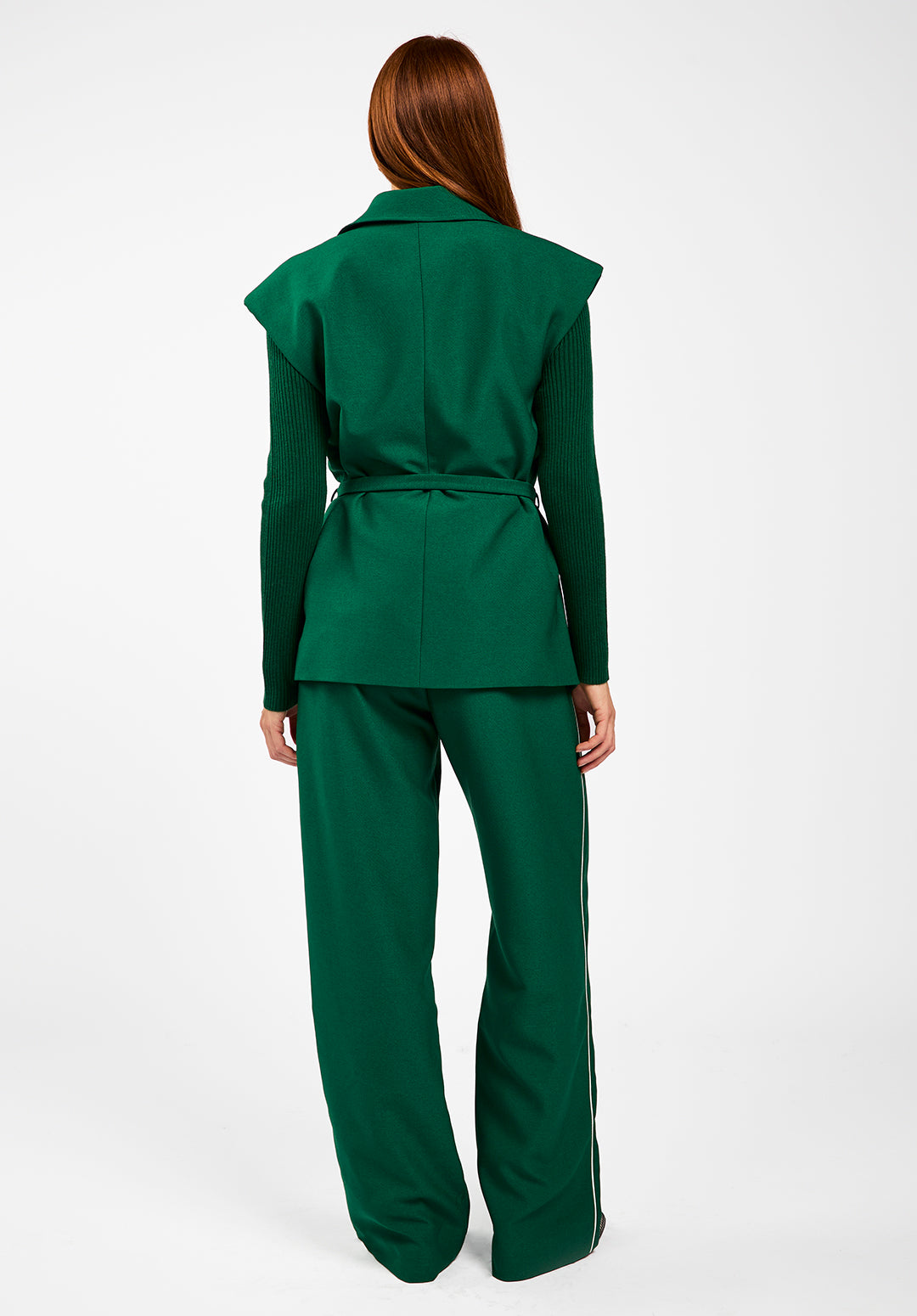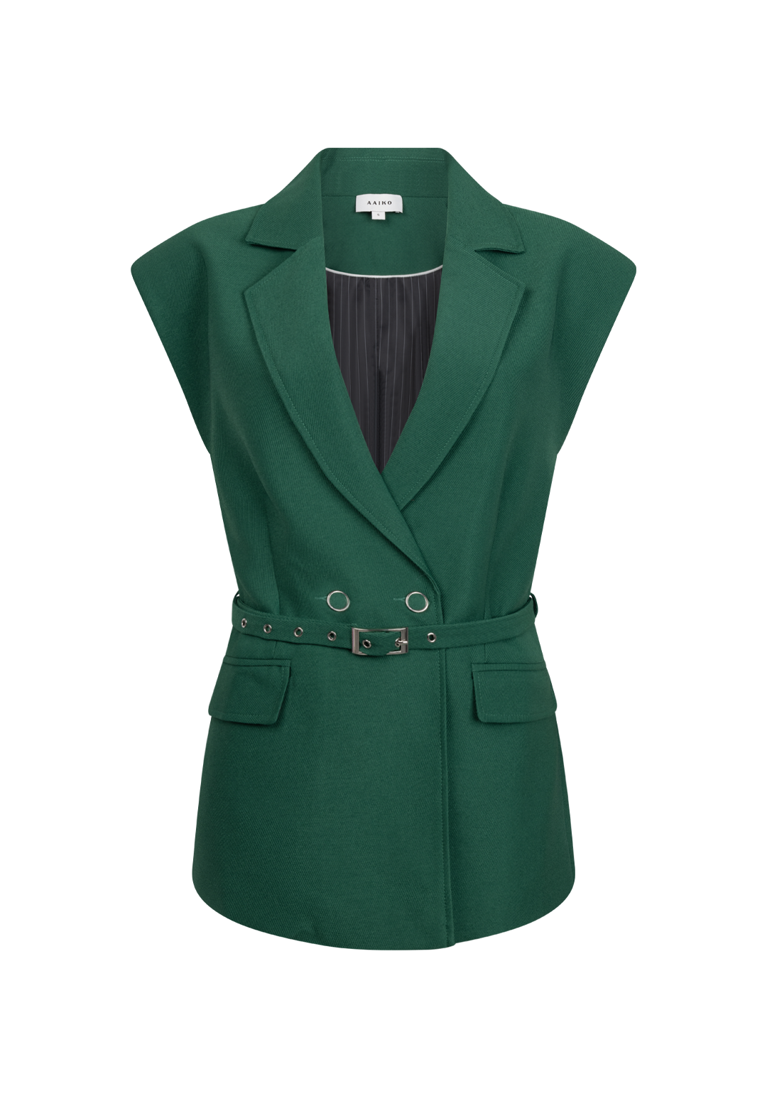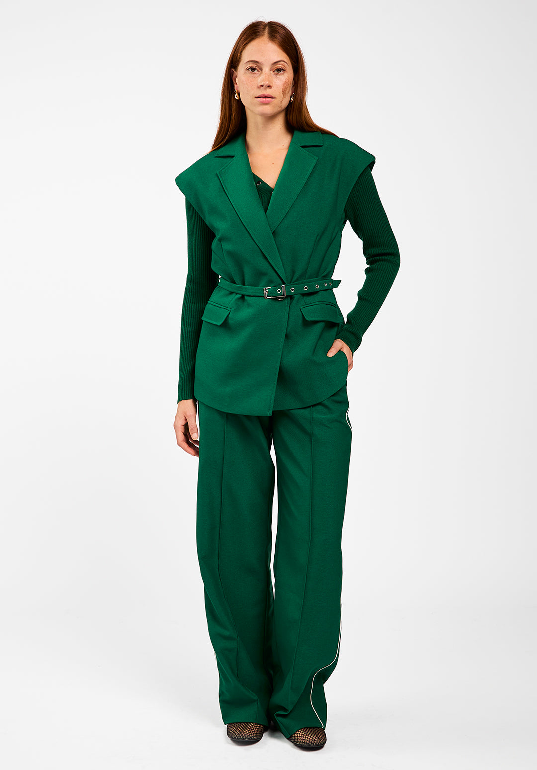 Het Lina gilet is een gevoerd, mouwloos model met een opvallende schouderlijn en stevige tailleceintuur. De reverskraag en klepzakken geven het gilet een gestructureerde look, terwijl de zachte stof zorgt voor draagcomfort. Draag ‘m open over een knit of juist dicht als top.