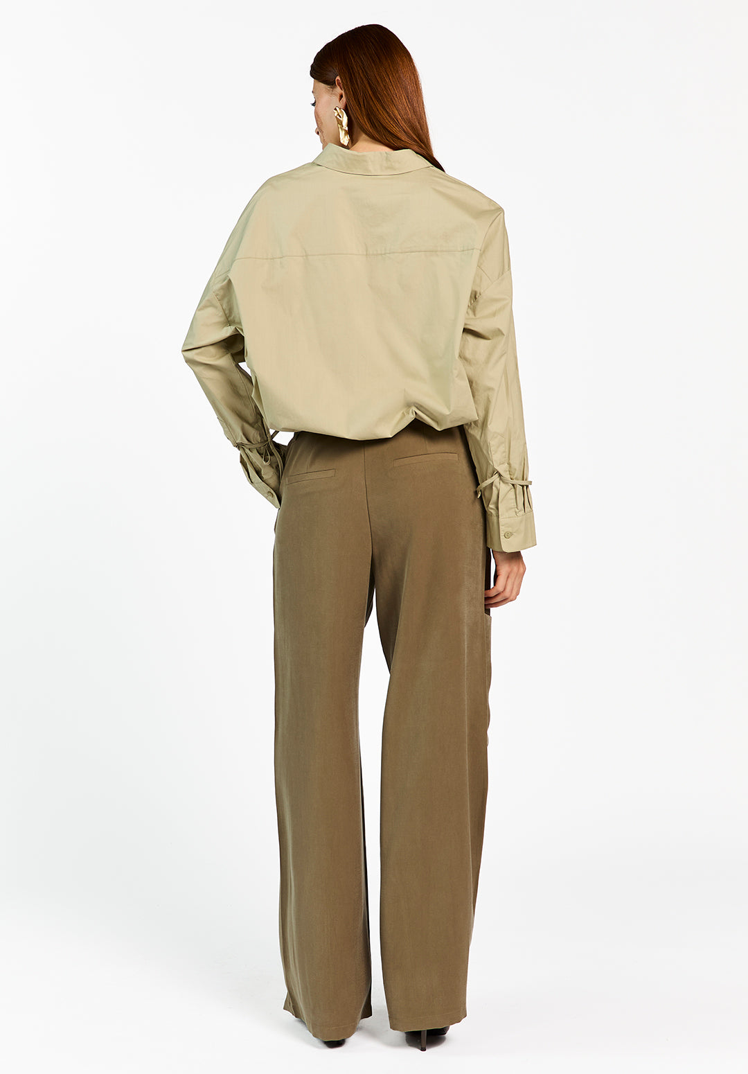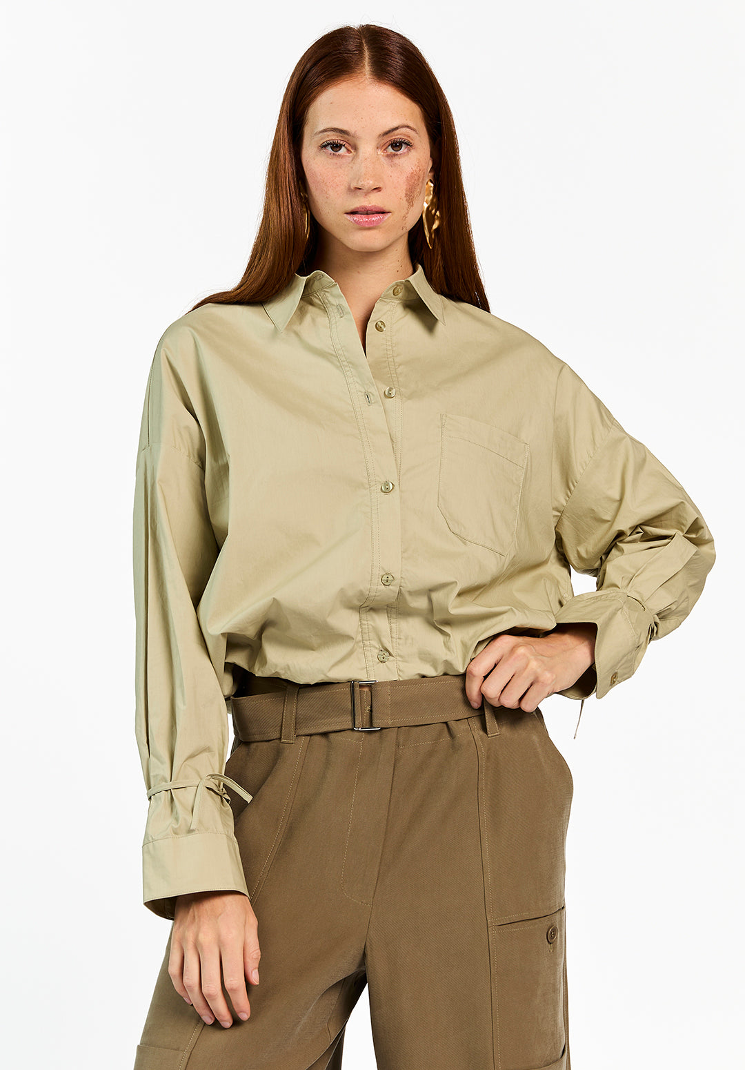 The Mikkie Blouse is a modern classic with a rugged edge. The oversized fit and chest pocket give it a casual look, while the tie-detail sleeves add a refined touch. Made from durable cotton that retains its shape beautifully. Pair with the River trousers for a bold, everyday look.