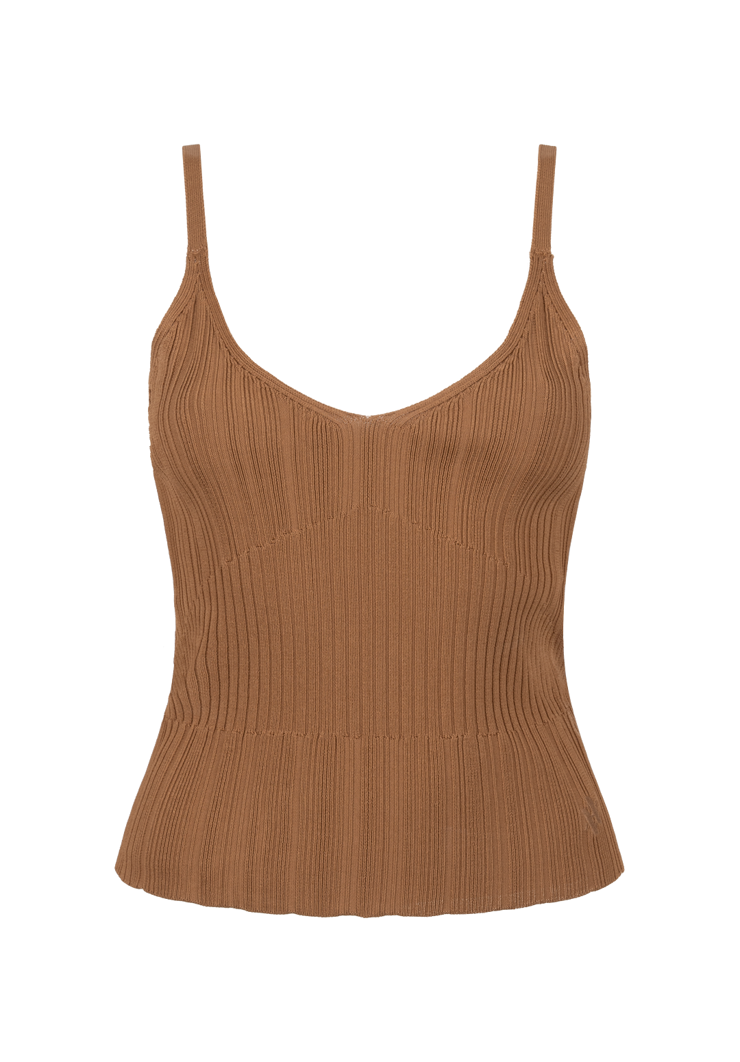 Deze top heeft een vrouwelijke en moderne uitstraling. Het fijngebreide model sluit mooi aan op het lichaam en is voorzien van een subtiele V-hals en smalle schouderbandjes. De geribde structuur geeft de top een elegante en verfijnde look.
